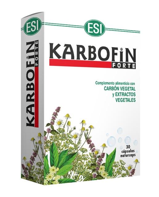 30 cápsulas de carbón vegetal para regular el tránsito intestinal karbofin forte esi